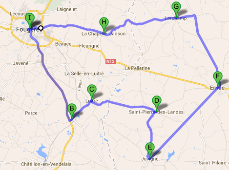 Dompierre D798 - Luitre D113 - St Pierre Landes - Juvigné - Ernée - Larchamp - La Chapelle Janson - Fougères