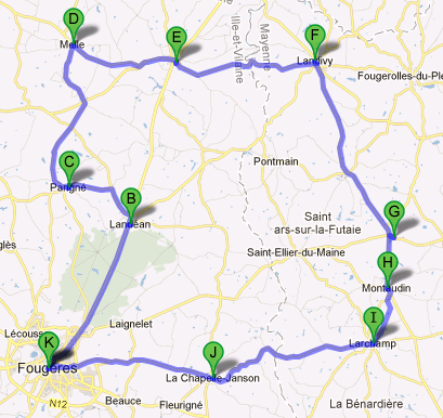 Landéan - Parigné - Mellé - Louvigné - Landivy - La Tannière - Montaudin - Larchamp - La Chapelle Janson - Rond point Masson