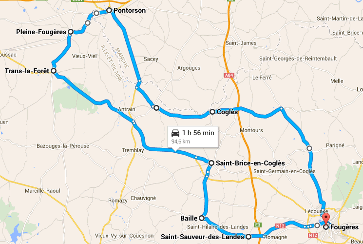 Romagné - St Sauveur des Landes - Baillé - St Brice - Antrain - Trans La Foret - Pleine Fougères - Pontorson - St Ouen Rouerie - Coglès - Poilley - Lécousse