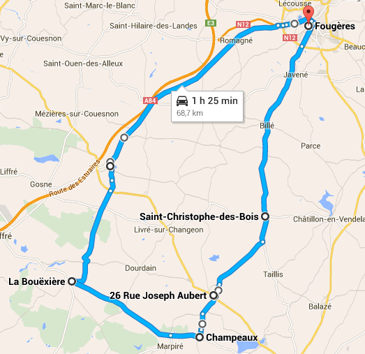 St Aubin - La Bouexière - Marpiré - Champeaux - Val d Izé - St Christophe - Fougères