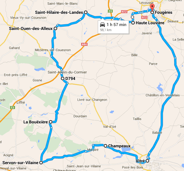 Vitré - Champeaux - Marpiré - Servon/Vilaine - La Bouexière - St Aubin - Mezières - St Ouen - St Hilaire - Romagné - La Tanceraie - Ste Anne - Fougères
