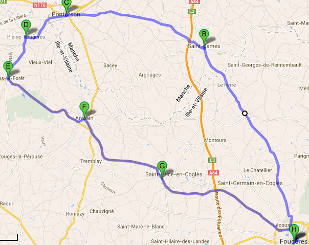 St Brice - Antrain - Trans la foret - Pleine Fougères - Pontorson - St James - Lécousse