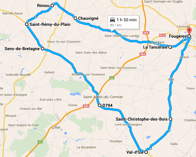 St christophe - Val d Izé - St Aubin - Sens - St Rémy - Rimou - Chauvigné - St Marc le blanc - Baillé - Romagné - La tanceraie - Moulin aux pauvres