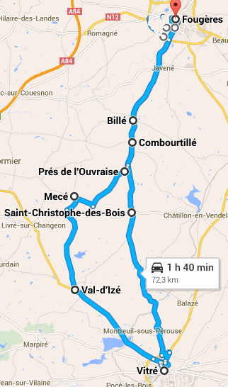 Combourtillé - Bon dieu rouge - Mecé - Val d Izé - Vitré - St Chistophe - Billé - La rivière - Gibary - rue des vallées